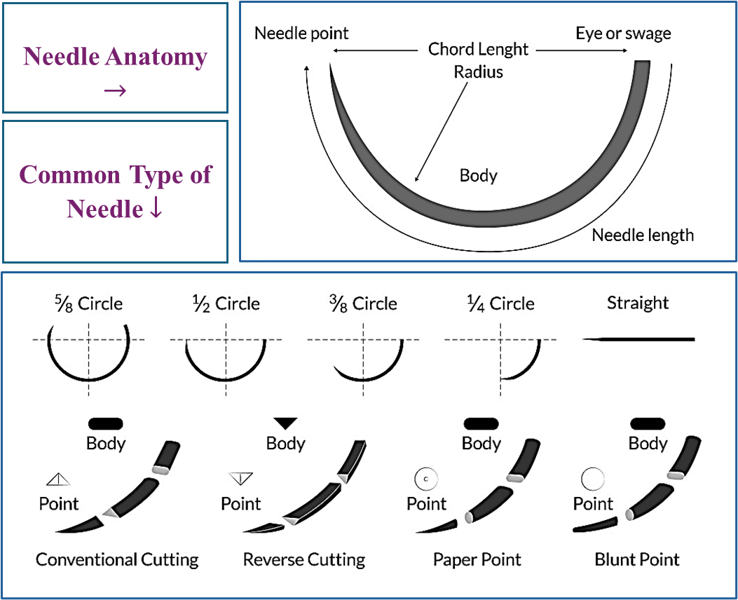 - Half-Circle & Three-Quarter Circle Needle: Ideal for deep tissue suturing.